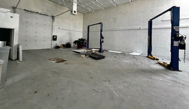 There is parking in front and behind the bay along with street parking, and comes with select equipment such as tire balancer and rotary lifts (inquire for more details).