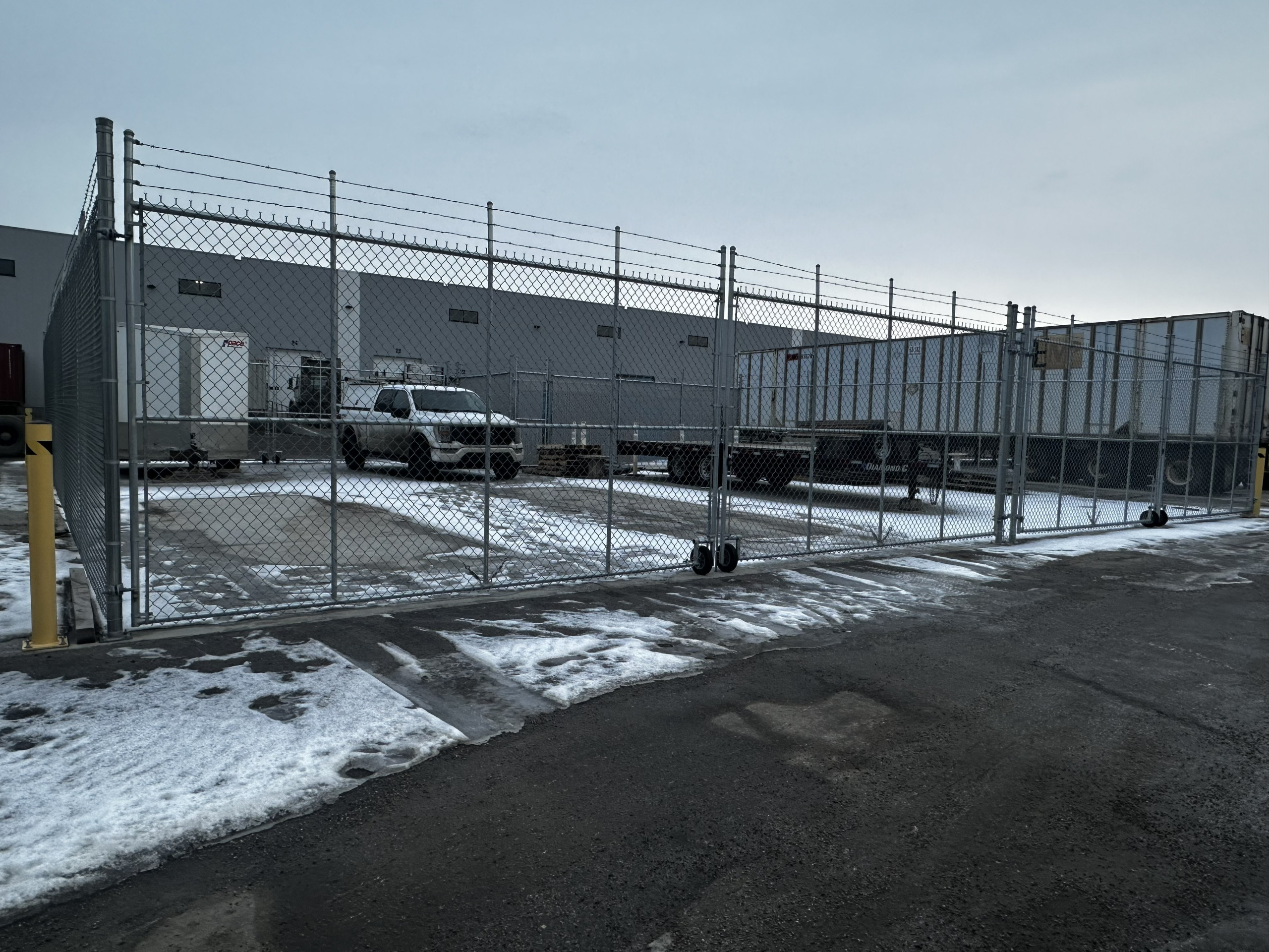 Fenced compound yard (3,000 SF), double-gated with drive-through capability; can accommodate four trailer stalls or function as a secured yard